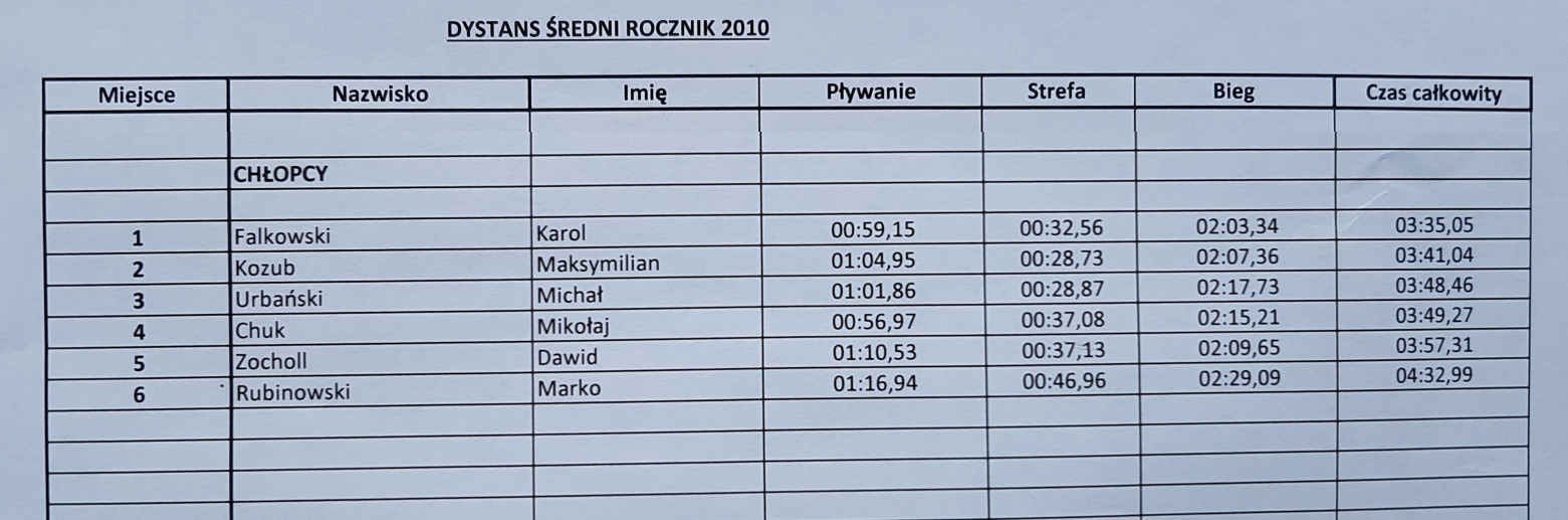 Wyniki 2022r. Aquathlon.